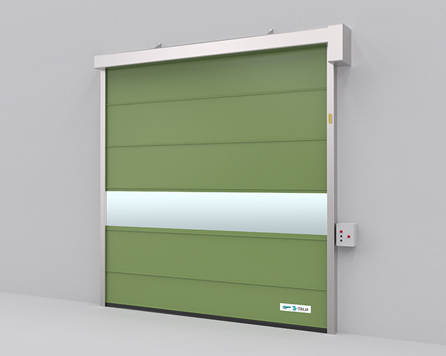 EL is the GO-FAST rapid wrapping door designed for environments most stressed by atmospheric agents. Fast and strong! Its stiffening bars inserted in the coat, strongly oppose any pressure received, making it the ideal partner for those contexts that use in particular weather conditions. The division of the mantle sectors allows the insertion of transparent PVC sections.