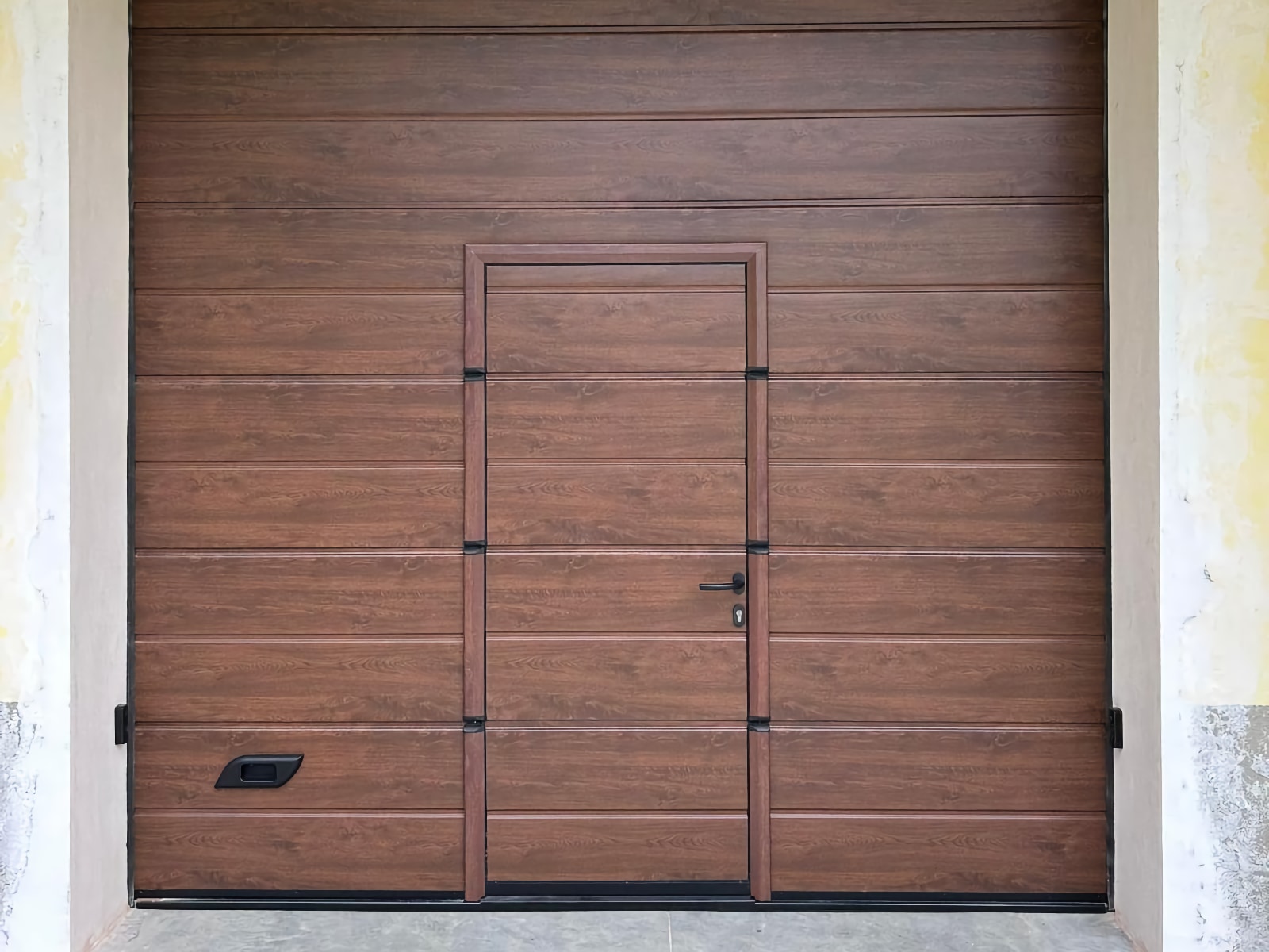 Un elemento distintivo di questa installazione è la porta pedonale inserita GO-LEVEL, posizionata centralmente. Questa caratteristica offre un accesso rapido e comodo senza dover aprire l'intero portone sezionale. La porta pedonale è progettata per integrarsi perfettamente con il design del portone, garantendo un'estetica uniforme e un alto livello di sicurezza.